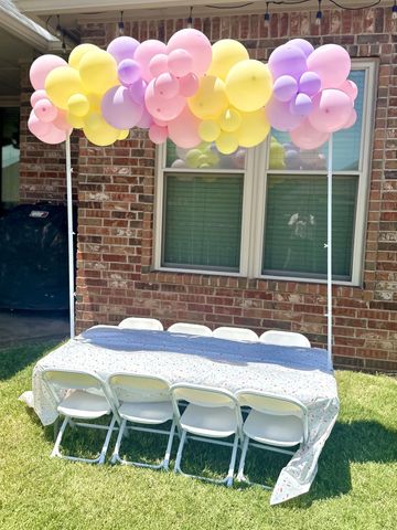 Add balloons to your setup to match your party theme! Pricing starts at $75 and varies depending on length/style of garland requested. Contact us or one of our preferred balloon vendors for pricing and more details.