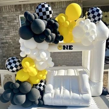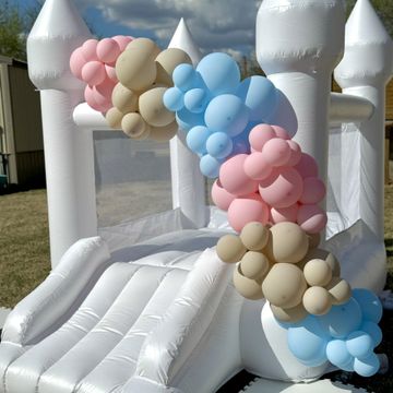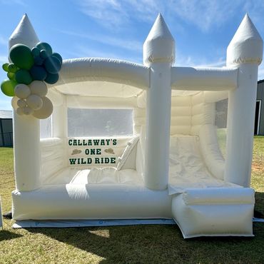 This 11' tall, 10x13' white bounce house with a slide is fun for all ages!