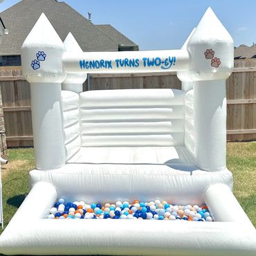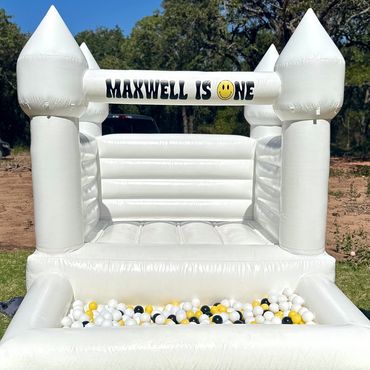 This 12' tall, 13x13' open white bounce house is fun for all ages!