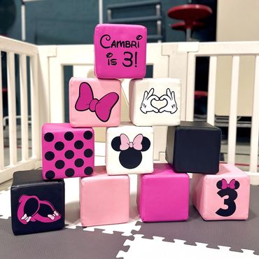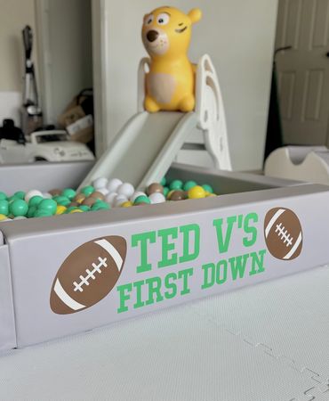 Elevate your rental by adding custom decals! All of our inflatables, ball pits, blocks and treat wall can be personalized. Pricing starts at $25 and varies depending on complexity/size of decals requested.