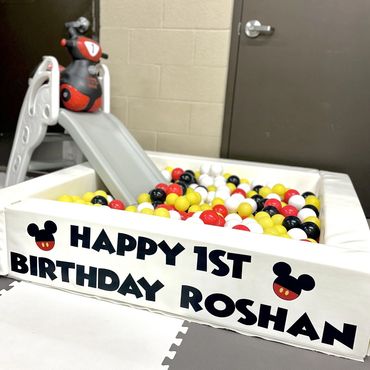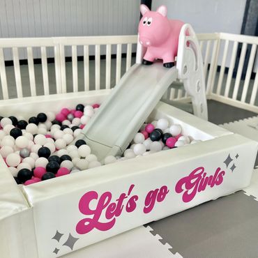 This 6x6' ball pit is 20" deep and fun for all ages! Ask us about adding blocks or additional ball colors for a pop of color!